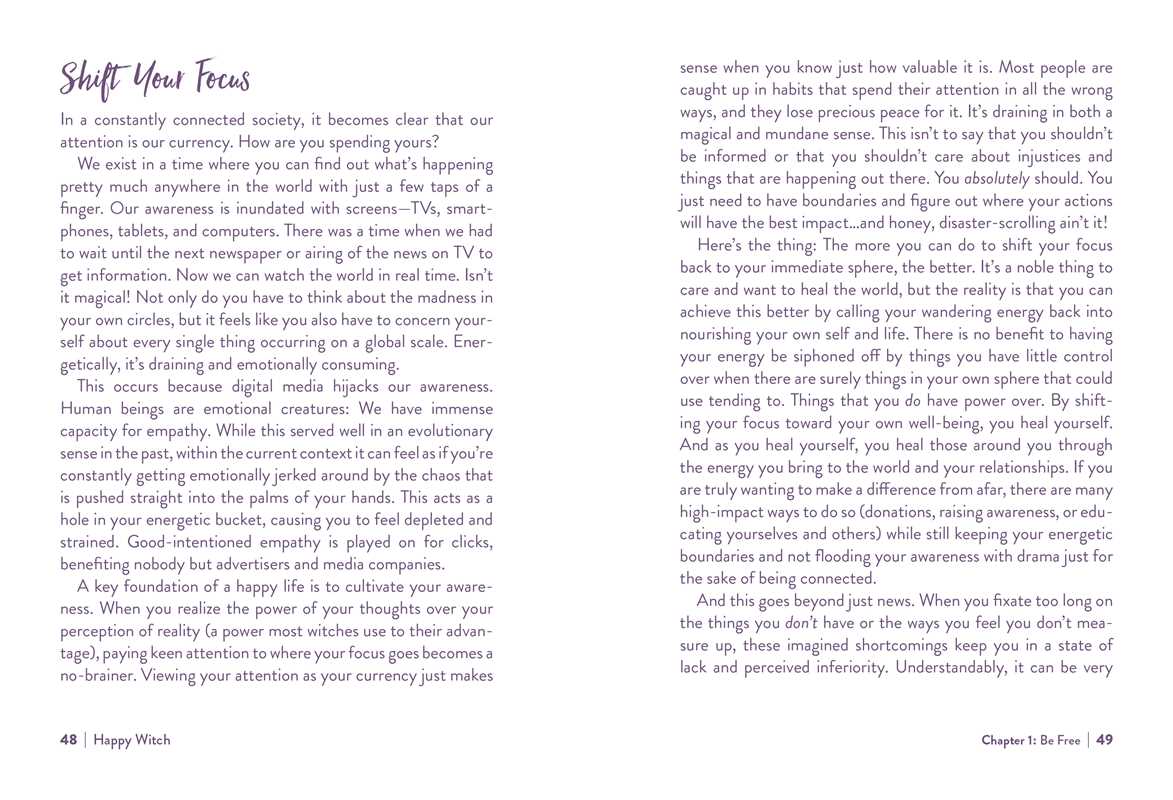 Happy Witch is an uncommon spell book full of witchy self-care spells and rituals that think outside the box of what a witch’s practice usually looks like. From kinetic cloud dough play for moving through your emotions to using dance as a form of manifestation, Happy Witch brings out your inner child to help you un