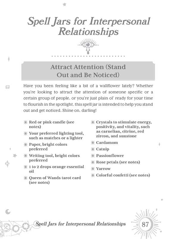 Then begin manifesting your goals with fifty step-by-step spell jar recipes for everyday life, including spells for: